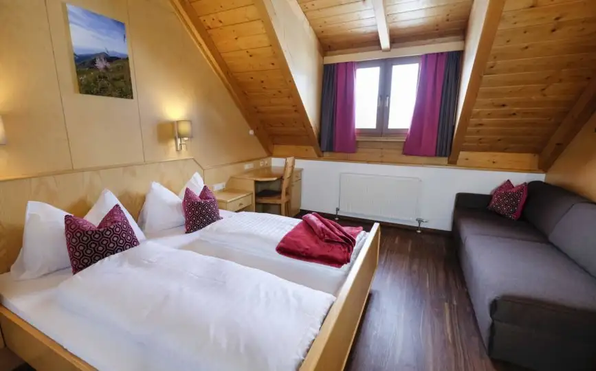 Mit einem Zustellbett kann das Doppelzimmer unkompliziert in ein Dreibettzimmer verwandelt werden.