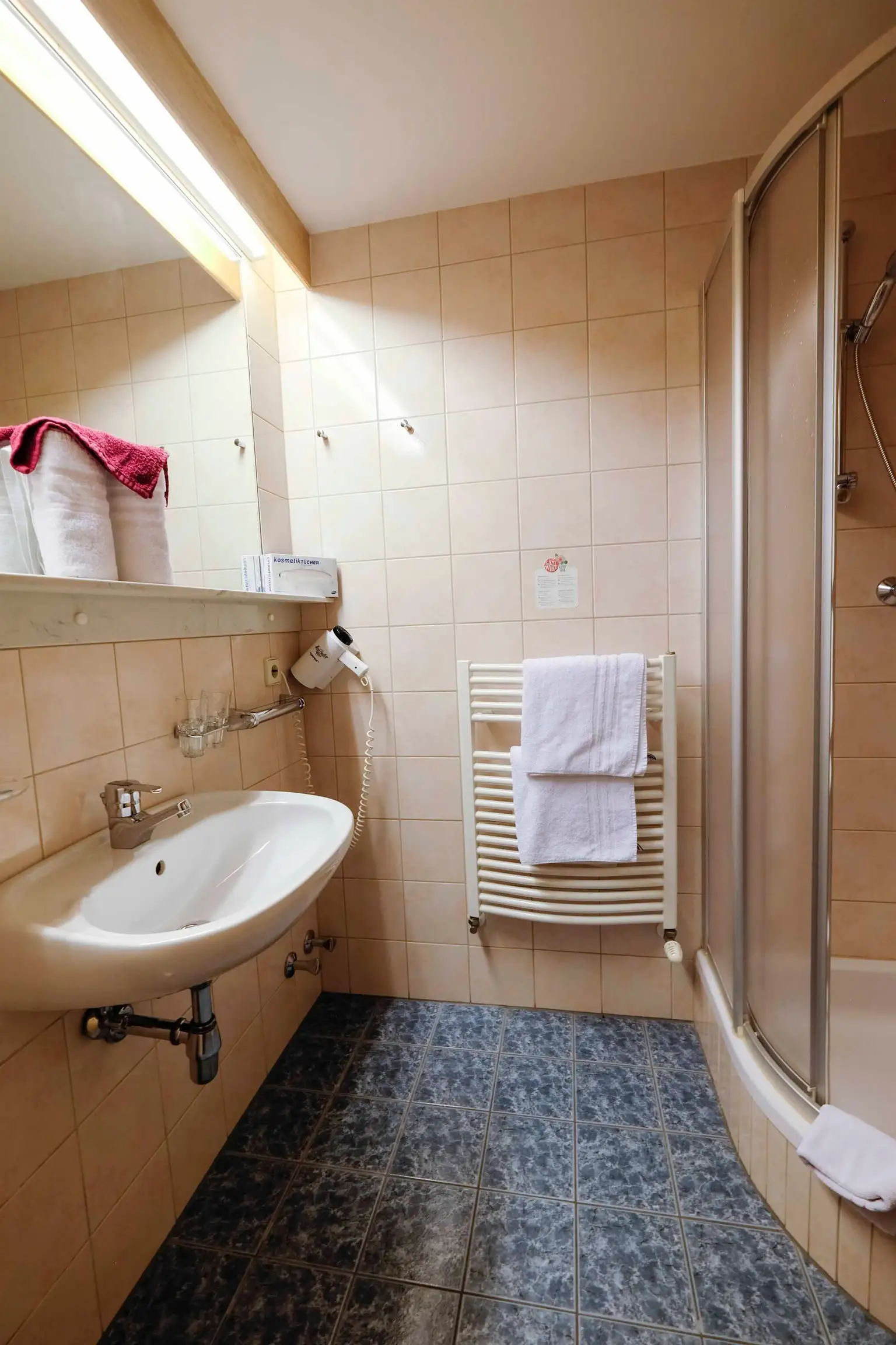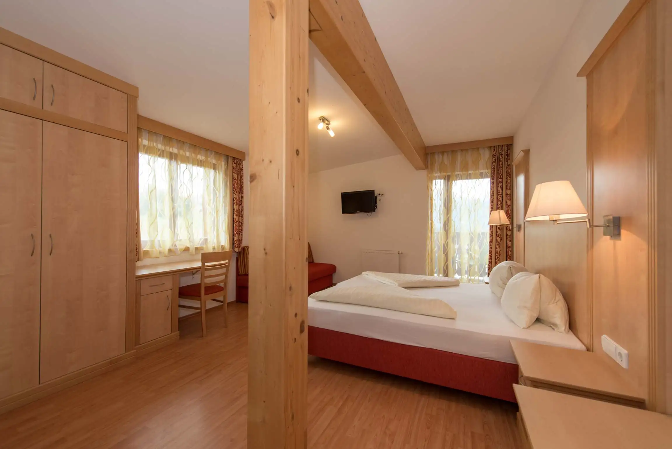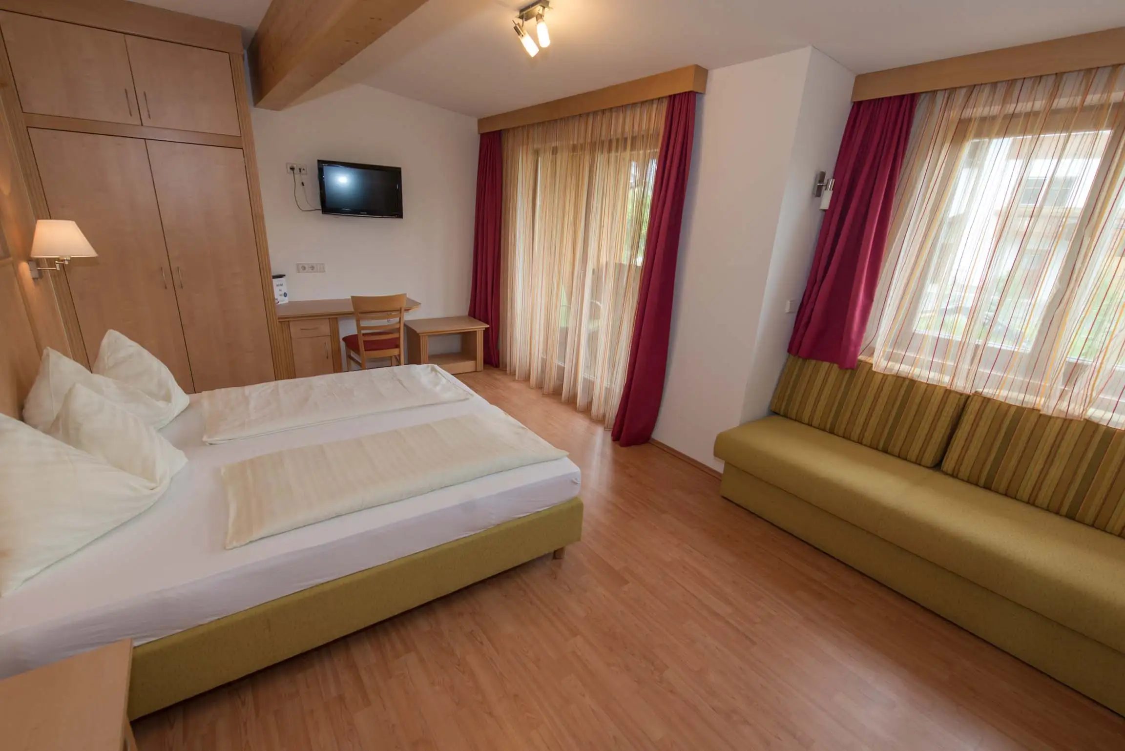 Mit einem Zustellbett kann das Doppelzimmer unkompliziert in ein Dreibettzimmer verwandelt werden.